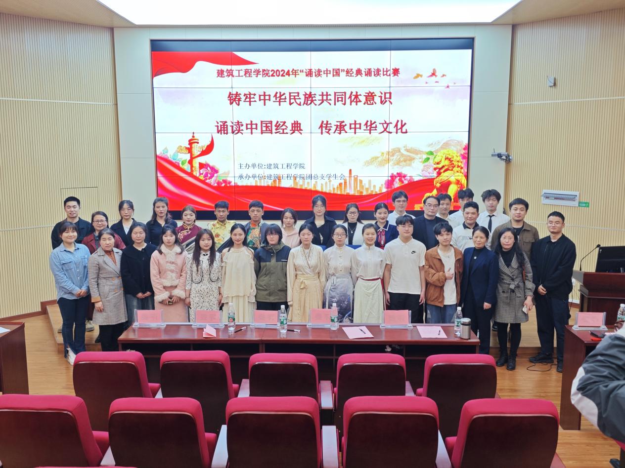 3月28日,建筑工程学院在图书馆学术报告厅举办“诵读中国”经典诵读比赛。学院领导班子及教师、学生代表80余人参加。