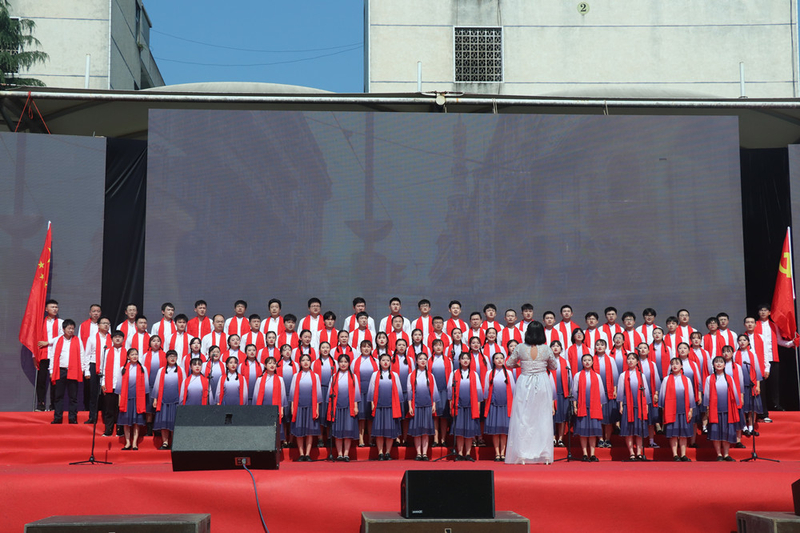 比赛最后,全体人员起立齐唱《没有共产党就没有新中国》,挥动手中的党旗、国旗,用歌声表达对党和祖国的热爱及美好的祝福。