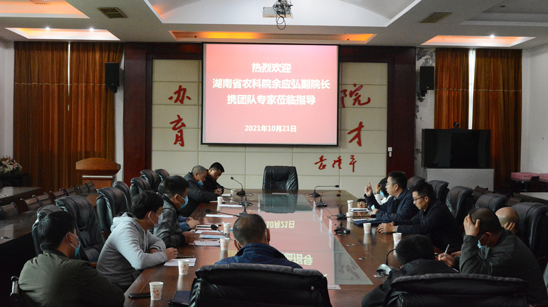 10月21日,湖南省农科院副院长余应弘带领该院专家团队来学院指导科研工作。学院科研产业处全体工作人员参加座谈会,院长助理匡晓东主持。